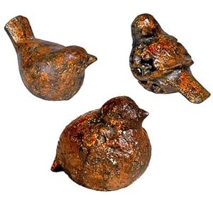 Crafted of cast iron with a antiqued brown finish, this set of 3 bird statue can be used indoors or outdoors and will be an attractive addition to your room or garden. This elegant cast iron bird bath will add a touch of class to your garden or patio. The grouping features a floral design doorstop, two primitive bird figurines and a cast iron heart ornament, all unmarked. Bring your home environment to life with the iron bird figurine! $19.99 cast iron blue bird statue figurine art sculpture garden decor paper weight.